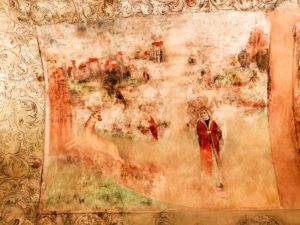 Jest to jedyne malowidło w sali, na którym postacie (niedźwiedź, dudziarz oraz tancerz) zostały ukazane wśród rozłożystej roślinności.