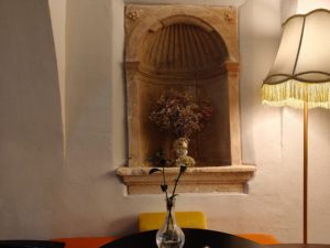 Ciekawym elementem wystroju omawianej kamienicy jest umywalka (nie jestem do końca przekonany do czego służył ten detal). Być może była to skarbona bądź kropielnica. Nie znalazłem niestety informacji o funkcji, jaką mogła pełnić ta kamienna dekoracja. Opisywany detal jest renesansowy albo barokowy.